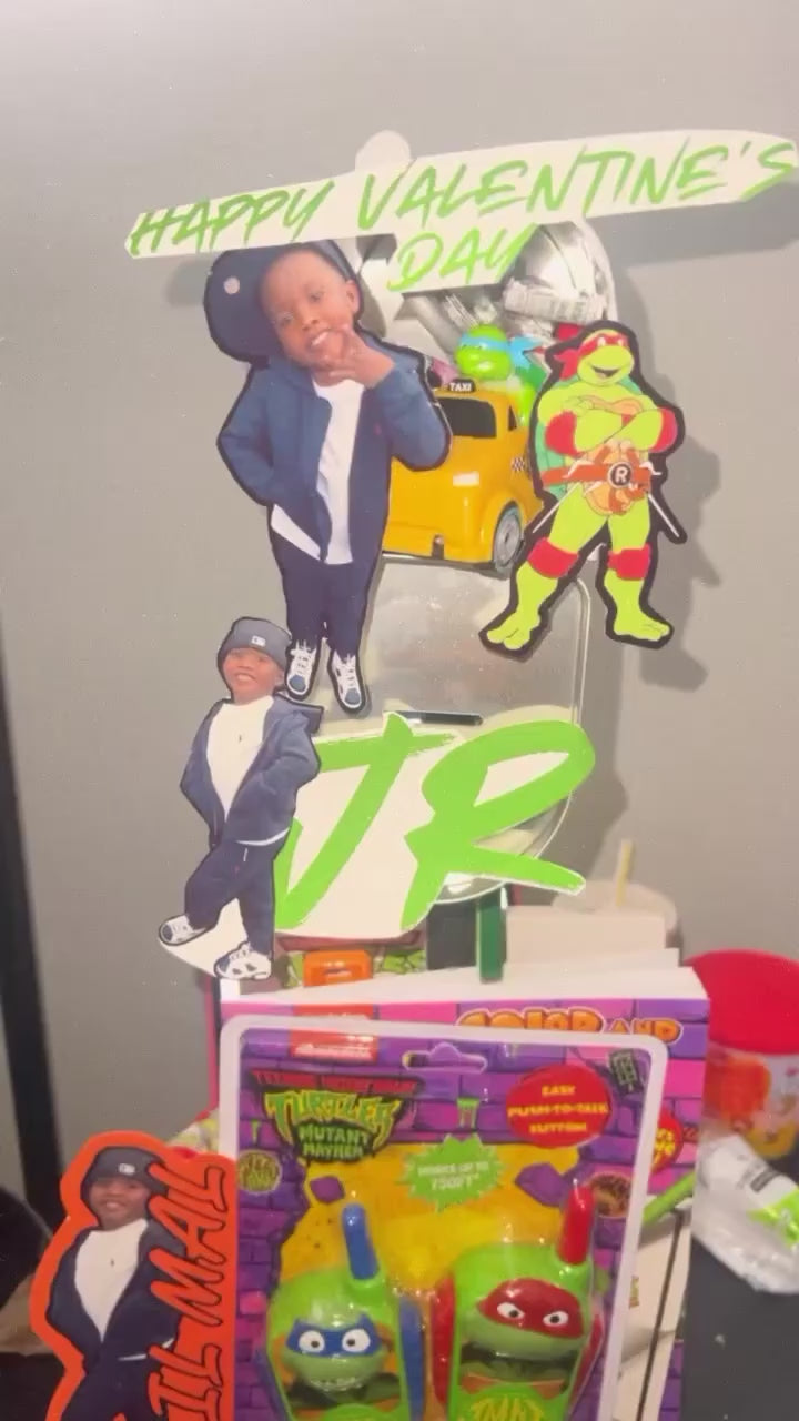 Submit: Child / Persons Name, Theme You Want, Submit High Quality Photos You Would Like To Use, Custom Wording, & Everything you want included.